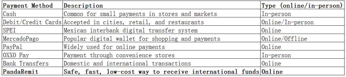 Understanding Mexico's payment methods ensures secure, fast, and convenient access to both domestic and international funds. In this article, we explore Mexico’s key payment methods and explain how PandaRemit provides a reliable solution for receiving international transfers.