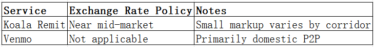 In the Koala Remit vs Venmo comparison, each service offers unique advantages. Koala Remit is best for international users needing transparent fees and multi-currency support, while Venmo suits domestic U.S. transactions.