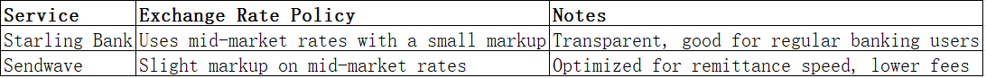 Starling Bank vs Sendwave: Exchange Rates