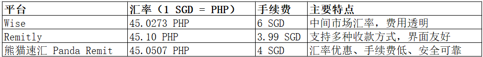如今,从新加坡向菲律宾汇款变得前所未有的方便与实惠。无论是Wise、Remitly,还是熊猫速汇(Panda Remit),都提供安全且高效的服务。其中,熊猫速汇以其低手续费、优质汇率和简便操作体验成为2025年值得信赖的选择之一。