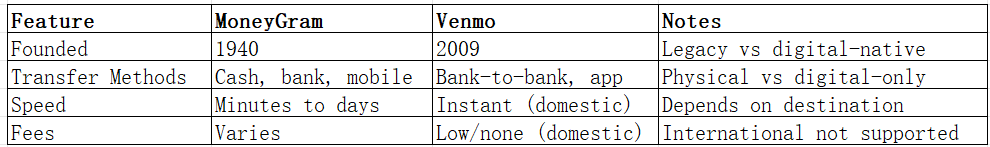 In the MoneyGram vs Venmo comparison, MoneyGram stands out with its global reach and multiple payout options, while Venmo provides fast, free domestic transfers with social payment features. Users should consider destination, speed, and fees when choosing a service.