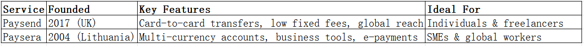 Differences: Paysend focuses on affordable card-to-card transfers for individuals, while Paysera offers broader financial tools such as business payments and e-commerce integrations.