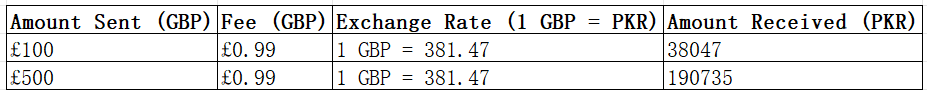 Remitly Example Table (GBP to PKR)