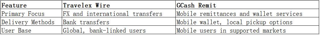 Both services offer distinct advantages. Travelex Wire appeals to users who prioritize trusted FX services and bank transfers. GCash Remit is ideal for those who want mobile wallet convenience and fast payouts in supported regions.