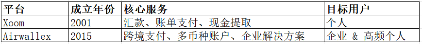 目标用户:Xoom面向个人,Airwallex面向企业和高频用户