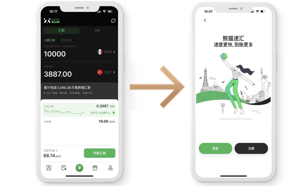 下载熊猫速汇APP,注册登录即可开始闪速汇款!