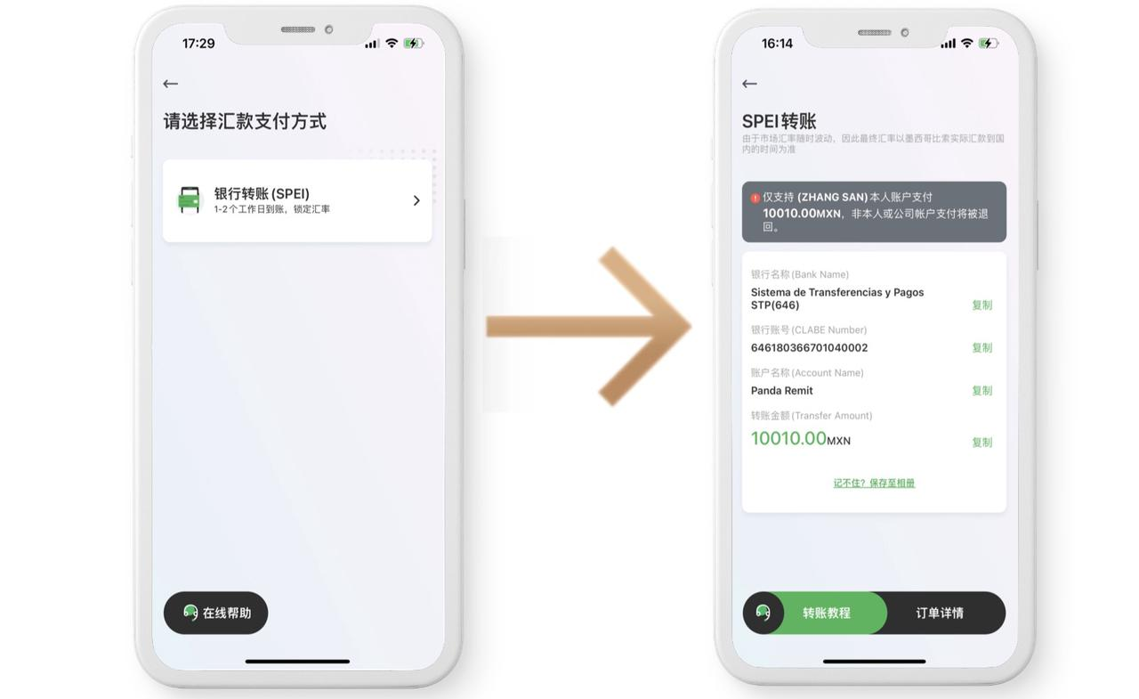 熊猫速汇提供了一种支付方式:SPEI转账,最快2分钟到账