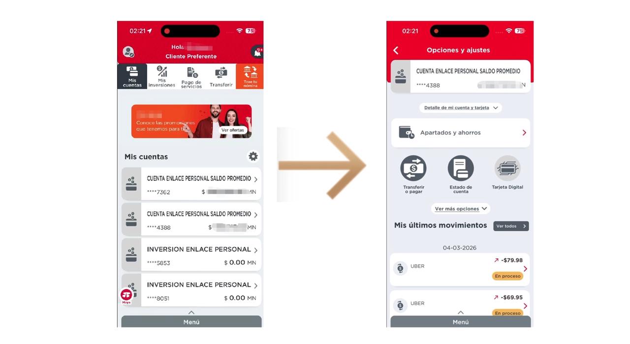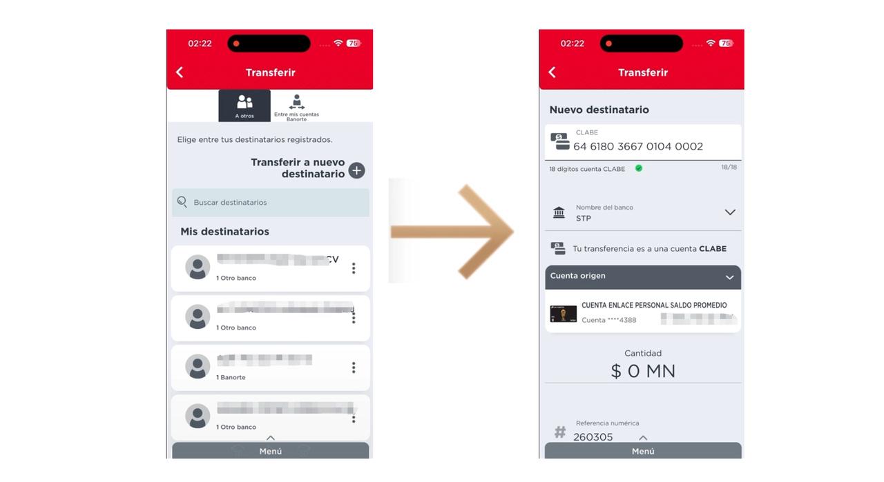 打开熊猫速汇开户人同名的Banorte手机银行,点击转账然后添加新的收款账户