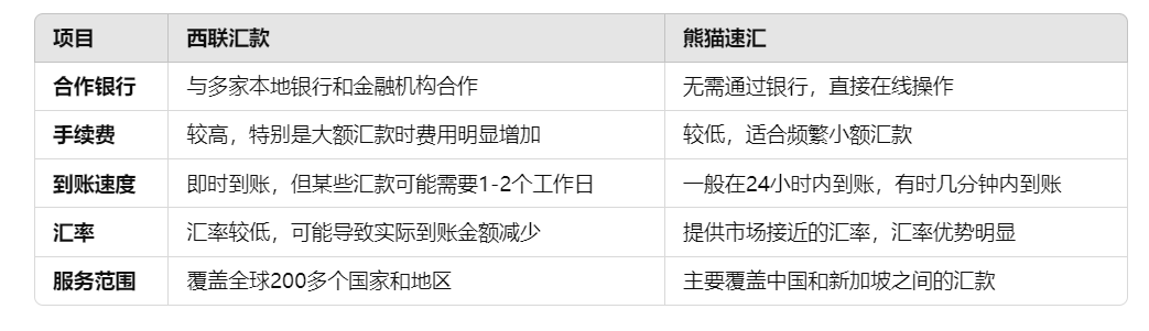 跨境汇款是全球化时代中日常金融活动的一部分,特别是对于新加坡的居民和从事跨国生意的人来说,寻找一个快捷、安全、成本低的汇款服务显得尤为重要。西联汇款(Western Union)和熊猫速汇(Panda Remit)是两大热门的国际汇款方式,但它们在服务类型、合作银行、费用和到账时间等方面各有特点。本文将对这两种汇款方式进行比较,帮助您更好地选择适合的汇款渠道,特别是将资金从新加坡汇款到中国。