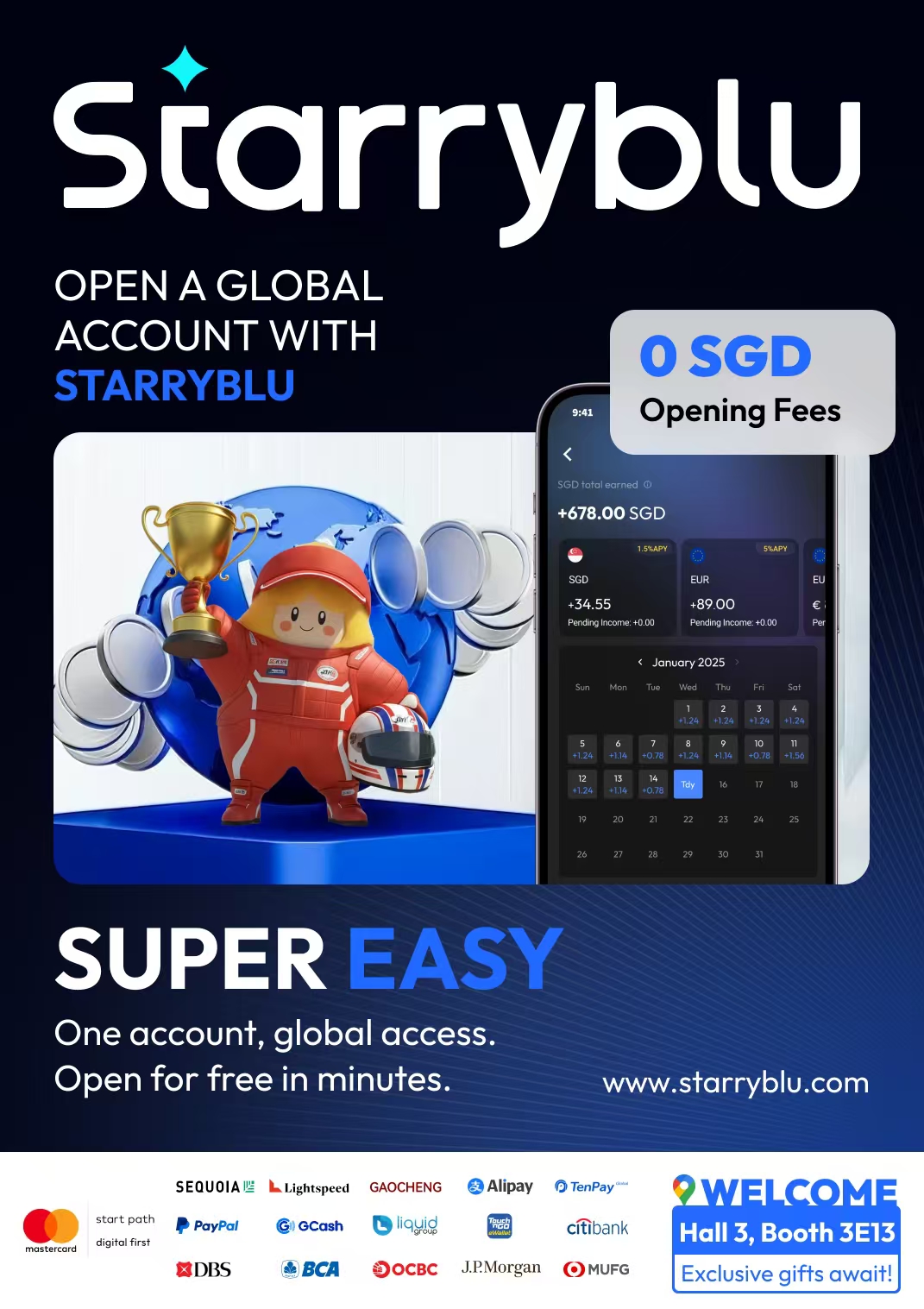 StarryBlu combines global accounts, multi-currency management, cross-border transfers, cashback on spending, daily balance earnings, AI Agent smart finance, and MAS supervision. It allows overseas users to manage all aspects of their finances—payments, transfers, and fund growth—on one platform, making global money management simpler and more efficient.