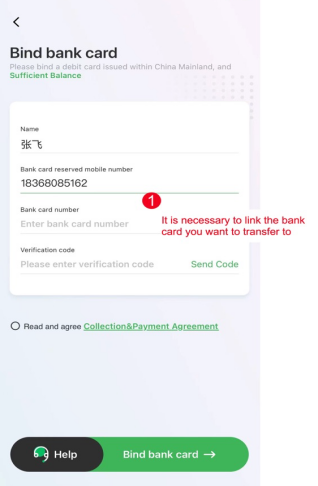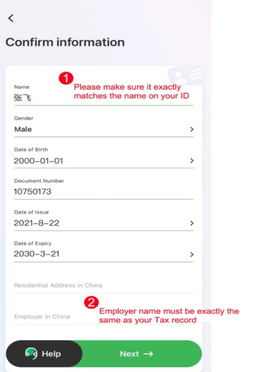 7、본인 인류 정보를 확인하고 결제용 중국 은행 카드를 등록해 주십시오.