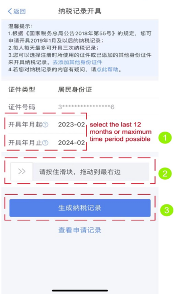 (3)개인소득세 기록을 생성하세요.유의사항: 납세 기록 생성 가능 최대 기간은 3년이며, 하루에 최대 3회까지만 생성할 수 있습니다.