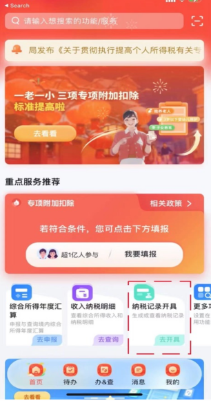 4、로그인에 성공하면 메인 페이지에서 「납세 기록 발급」 을 클릭하세요.