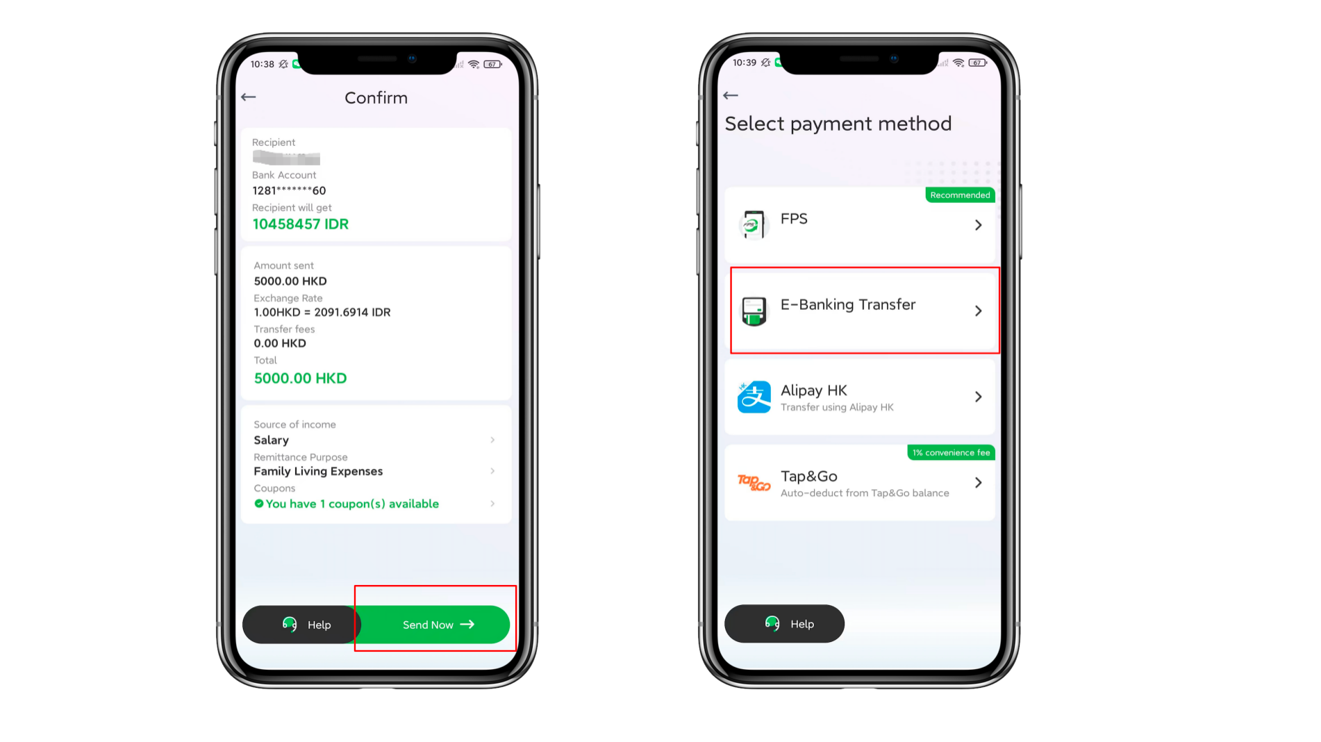 2. Pilih akun penerima pembayaran yang telah Anda tambahkan atau tambahkan akun penerima pembayaran baru, lalu konfirmasikan detail pesanan Anda.