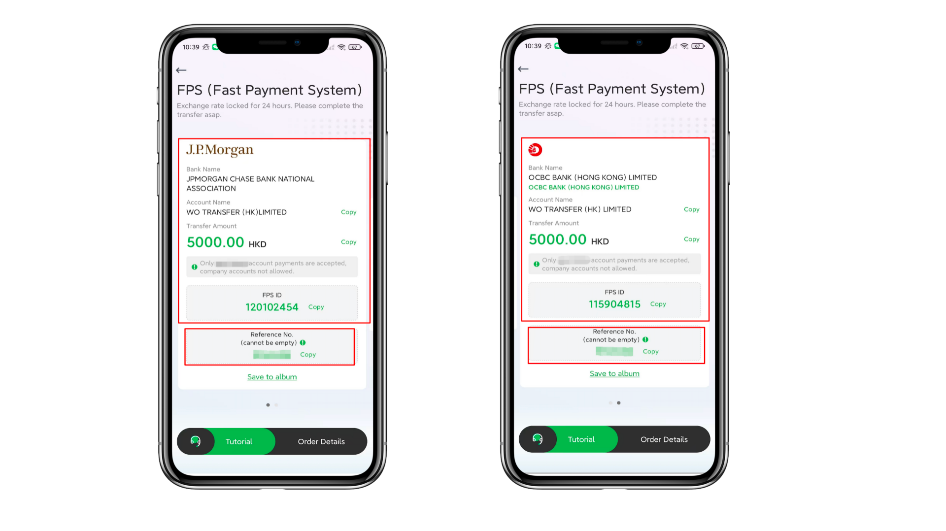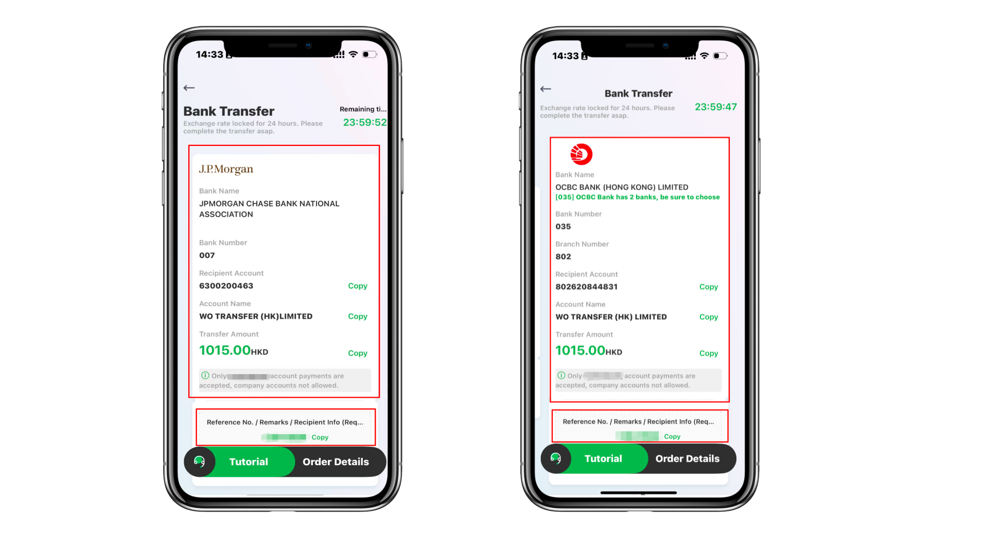 Ada dua rekening bank, mengambil OCBC Wing Hang Bank Limited 035 sebagai contoh.