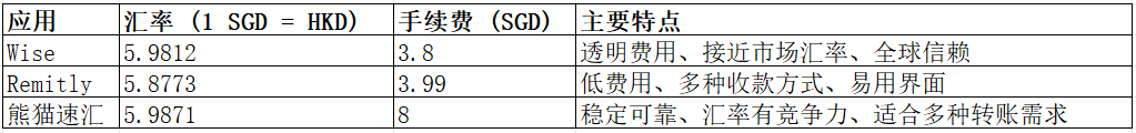 2025年新加坡到香港最佳汇款应用对比