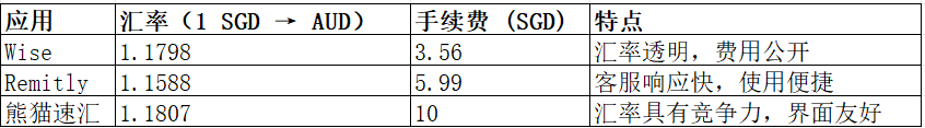 综合来看,熊猫速汇、Wise和Remitly都是新加坡用户跨境汇款到澳大利亚的可靠平台。Wise以透明定价著称,Remitly胜在易用与服务,而熊猫速汇凭借稳定汇率与便捷操作成为不少人的优选。