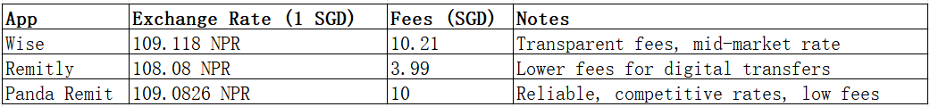 Here’s a comparison of top remittance apps available for Singapore to Nepal transfers: