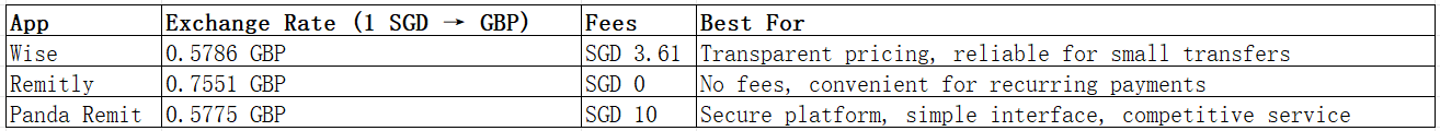 Here’s a look at three of the most popular apps for sending smaller transfers from Singapore to the UK in 2025:
