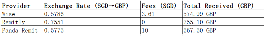 For smaller amounts (e.g., under 500 SGD), look for services that offer either no fees or flat-rate options — this keeps costs manageable.