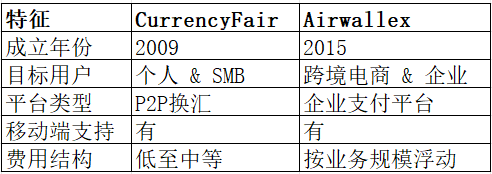 CurrencyFair vs Airwallex 跨境汇款服务2025对比