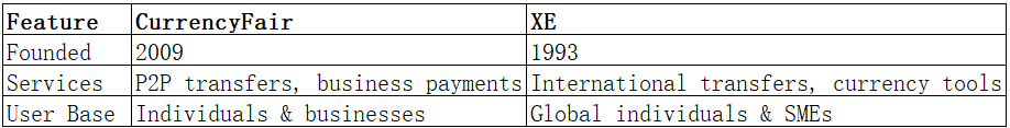 CurrencyFair is ideal for users prioritizing lower costs and competitive rates. XE is better for users valuing speed, app convenience, and global coverage.