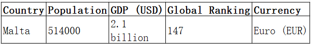 Malta is a small, developed Mediterranean country with growing use of digital payments and international transfers.