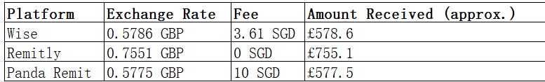 Let’s compare how much the recipient would receive when sending 1,000 SGD to the UK: