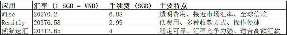 对于新加坡到越南的大额汇款,选择安全、低成本、汇率合理的平台至关重要。Wise、Remitly和熊猫速汇都是可靠的选择,但熊猫速汇以稳定汇率、低手续费和易用性脱颖而出,是高额汇款的优质选项。