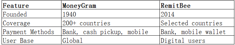 In comparing MoneyGram vs RemitBee, MoneyGram excels with global presence and diverse payout methods, while RemitBee offers fast, digital-first transfers via mobile apps. Users should evaluate transfer frequency, destinations, and cost considerations.