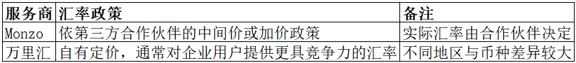 Monzo 更偏向个人银行服务;万里汇更侧重企业跨境收付款