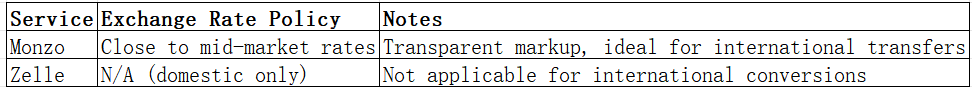 Monzo is suitable for users seeking international transfers with transparent fees and mid-market exchange rates. Zelle excels in instant domestic payments. For users prioritizing cost efficiency, speed, and multi-currency support, PandaRemit offers a strong alternative.