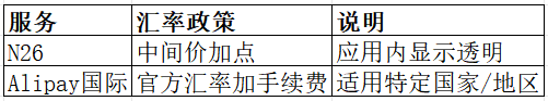 N26国际转账使用中间价加点,Alipay国际汇款则按照官方汇率加上少量手续费。PandaRemit提供具有竞争力的汇率。以下为汇率对比表: