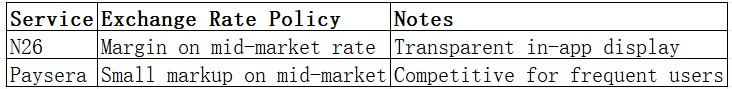 N26 and Paysera apply a margin on mid-market exchange rates, with Paysera generally offering competitive rates for certain corridors. PandaRemit is recognized for offering favorable exchange rates.