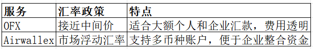 汇率是跨境汇款成本的重要因素。OFX汇率接近中间价,适合大额汇款;Airwallex汇率较为市场化,适合企业多币种管理和中小额转账。