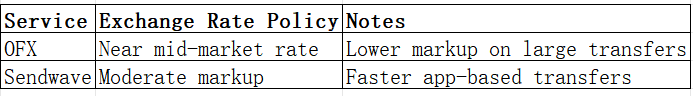 OFX charges fees based on transfer amount, often offering fee-free options for higher amounts. Subscription accounts or premium services can further reduce costs. Sendwave operates with minimal fees for smaller transfers, though larger transactions may incur percentage-based charges.