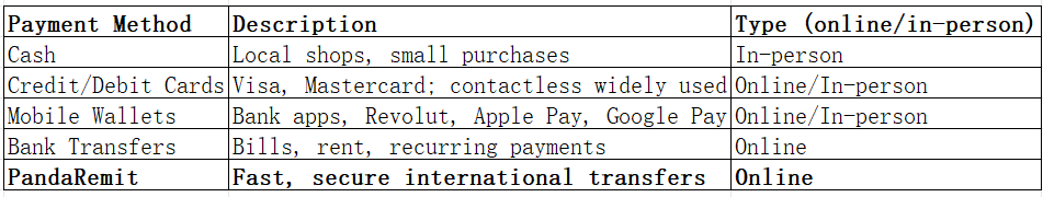 Cyprus offers diverse domestic payment options, including cash, cards, and mobile wallets. For international money transfers, PandaRemit is the go-to solution, providing fast, secure, and low-cost services for sending money from Cyprus worldwide.