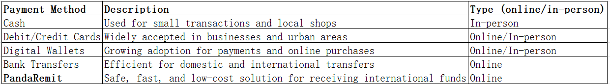 For receiving international transfers, PandaRemit offers a secure, fast, and affordable solution, making it easy for residents to access funds from overseas.