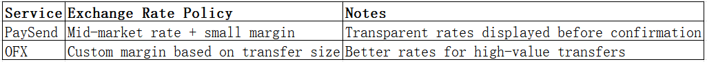 While both platforms avoid hidden markups, PaySend is better for small, fast transfers, whereas OFX benefits users transferring thousands of dollars.