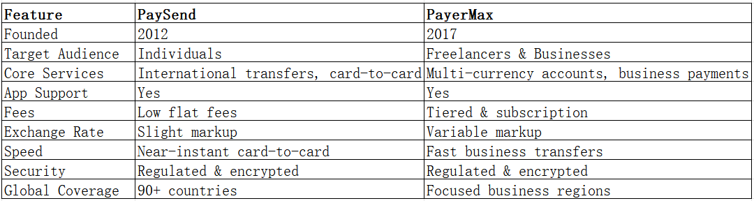 Comparing PaySend vs PayerMax highlights distinct strengths. PaySend excels in fast, affordable individual transfers, while PayerMax is tailored to business and multi-currency needs.