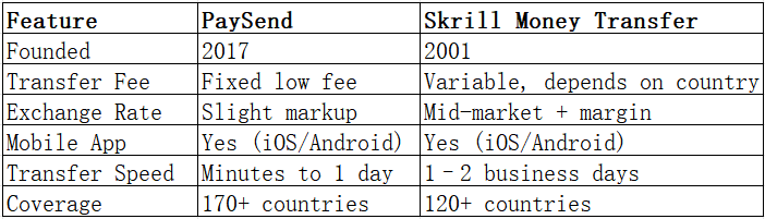 PaySend vs Skrill Money Transfer: Speed and Convenience