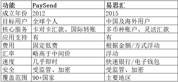 PaySend面向全球个人用户,易思汇主要服务中国及海外用户