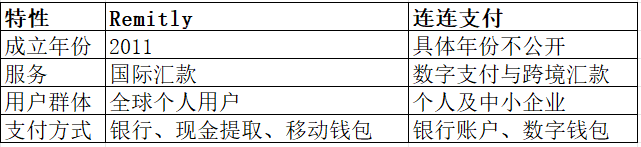 目标用户: Remitly主要面向个人用户;连连支付面向个人及中小企业。