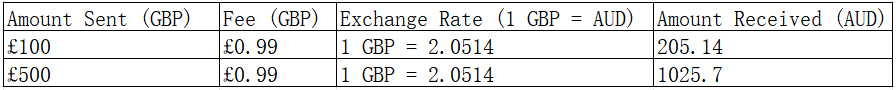 Below is an example table of how GBP to AUD transfers typically work on Remitly (illustrative rates):