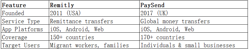 Both offer simple mobile interfaces and transparent pricing. However, PaySend appeals to card-to-card transfers, while Remitly emphasizes cash pickup and local delivery. For users who want an all-online, fast, and low-cost experience, Panda Remit also provides a competitive choice in the remittance market.