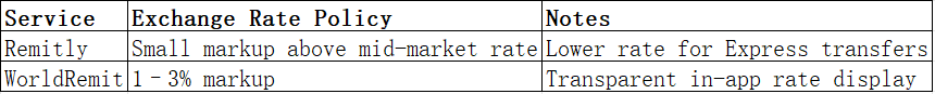 Exchange rate policies significantly impact how much recipients receive. Remitly often adds a small markup above the mid-market rate, especially for Express transfers. WorldRemit also applies a markup, typically within 1–3% depending on the corridor.