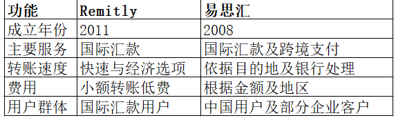 差异: Remitly针对国际用户提供多种转账速度及低费用选择;易思汇覆盖区域有限,服务重点在中国用户及企业。
