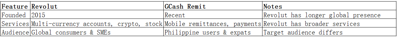 Comparing Revolut vs GCash Remit highlights different strengths. Revolut excels for global users with a wide range of financial services, while GCash Remit provides mobile-first convenience for Philippine remittances.