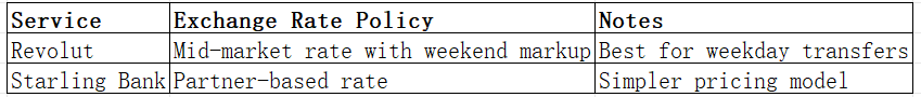 External reference: Finder’s comparison of money transfer fees notes that while Revolut is generally cheaper for frequent users, Starling provides more predictable pricing.