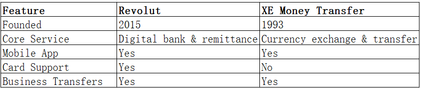Revolut stands out for everyday users seeking integrated financial tools, instant payments, and digital flexibility. XE Money Transfer, however, is better suited for users prioritizing currency expertise, higher transfer limits, and global coverage.
